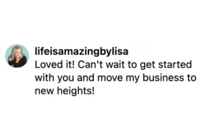 "Thank you for your advice, your encouragement, and the knowledge you share as well as the confidence you gave me to jump into this for my business. I feel awesome right now!"
